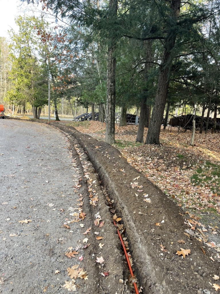 One current project started in the Fall of 2024 is trenching underground fiberoptic cabling to different sections of the park to improve the performace of our WiFi internet in the park.