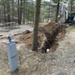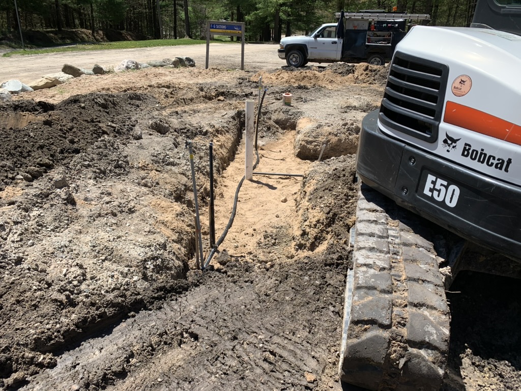 One current project started in the Fall of 2024 is trenching underground fiberoptic cabling to different sections of the park to improve the performace of our WiFi internet in the park.
